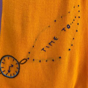 RARE HAND EMBROIDERED TIME TO…. 100% ACRYLIC KNIT RINGER TANK TOP