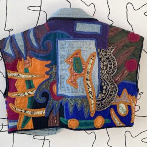 AWESOME 1980S JUDITH ROBERTS FUNKY PATCHWORK EMBROIDERED DENIM CROPPED VEST