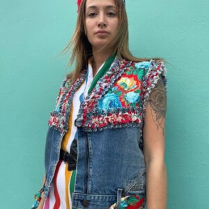 REPURPOSED LEVIS JEANS ONE OF A KIND DENIM FLORAL VEST