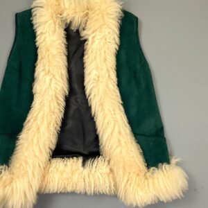 KILLER!!! GREEN SUEDE OPEN VEST W/ SHEARLING FUR TRIM