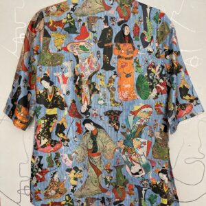 1960S ALL OVER JAPANESE FIGURE PRINT SHORT SLEEVE BUTTON UP SHIRT