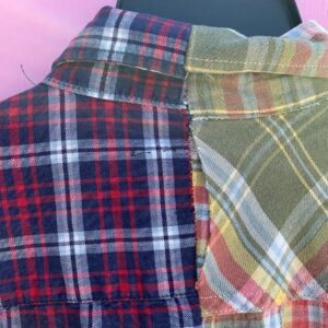 AS-IS HANDMADE SPLIT PLAID PRINT SHORT SLEEVE BUTTON UP SHIRT