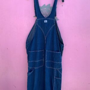 DARK BLUE DENIM OVERALLS W/ CONTRAST STITCH & BRASS WREATH BUTTONS
