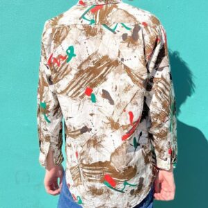 100% COTTON COLORFUL ABSTRACT PRINT LONG SLEEVE BUTTON UP SHIRT