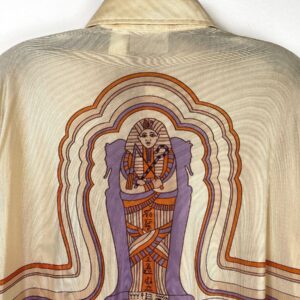AMAZING 1970S BUTTON UP SHIRT EGYPTIAN DESIGN BUTTERFLY COLLAR