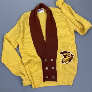 1960S KNIT CARDIGAN SWEATER W/ DEMARCHEE 62 CHENILLE PATCH