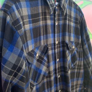 100% WOOL MADE IN USA BUFFALO PLAID FLANNEL SHIRT DOUBLE FRONT POCKET