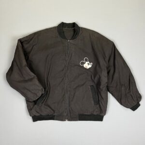 FUN 1980S-90S PUFFY EMBROIDERED MICKEY MOUSE APPLIQUE ZIPUP COTTON JACKET