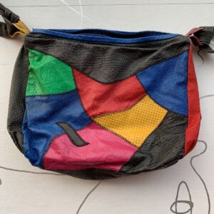 MULTICOLORED STITCHED LEATHER PURSE WITH INSIDE POCKETS