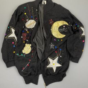 AMAZING! 1980S KNIT ZIPUP SWEATER METALLIC MOON & STARS APPLIQUES