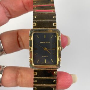 AS-IS GOLD PLATED WATCH SQUARE FACE BLACK DIAL, JAPAN MOVEMENT