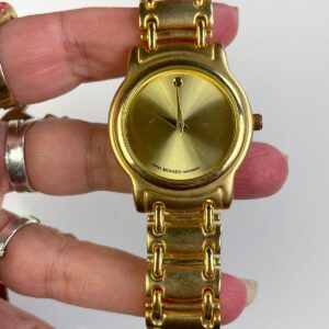 AS-IS CLASSIC ROUND DIAL MOVADO WATCH, MATTE GOLD CHAIN LINK BRACELET, SWISS MOVEMENT