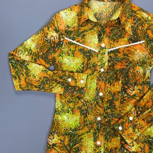 AMAZING! BRIGHT! 1960S-70S PSYCHEDELIC LONG SLEEVE BUTTON DOWN WESTERN BLOUSE FLOWER BUTTONS
