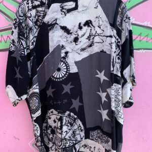 *AS-IS* 1990S BOXY FUNKY PRINT BUTTON DOWN BLOUSE CROPPED