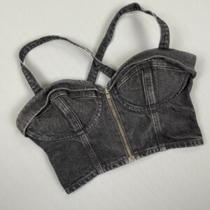 1980S-90S BLACK DENIM PADDED CORSET STYLE TOP CRISS CROSS BACK