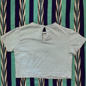 ADORABLE! 1960S SUPER SOFT KNIT BLUE POLKA DOT CROPPED TOP