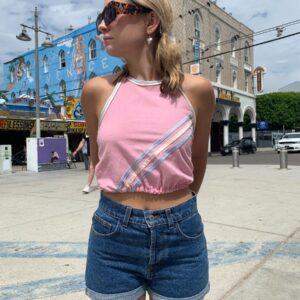 AS-IS CUTE 70’S HALTER TOP ELASTIC HEM STRIPED