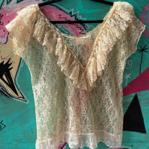*AS-IS* Y2K SHEER FLORAL LACE RUFFLED LACE WIDE COLLAR TOP