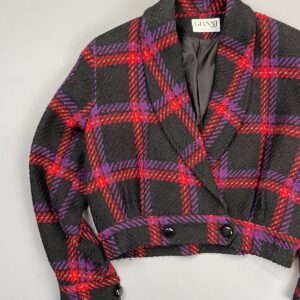 ADORABLE! 1980S-90S CROPPED WOOL TARTAN PLAID BLAZER