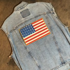LARGE BACK PATCH- AMERICAN FLAG YELLOW STITCHING ON SIDES *OLD STOCK