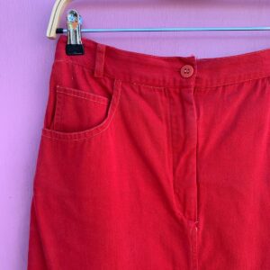FADED RED COTTON TWILL SKIRT W/ CONTRAST STITCHING