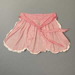 SWEET 1950S GINGHAM PLAID COTTON APRON RUFFLED TRIM
