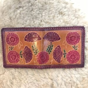 TOOL EMBOSSED LEATHER WALLET W/ DELICATE FLOWER DESIGN