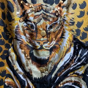 LS BD SILK TIGER BLOUSE SEQUIN DETAIL