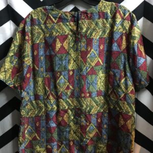 1990’S SILK BOXY PULLOVER TOP W/ GEOMETRIC PRINT