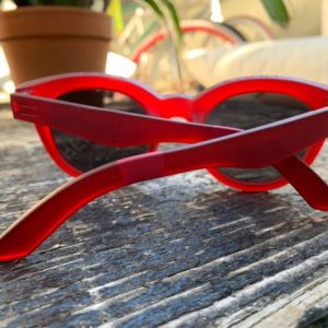 TRANSLUCENT RUBBERIZED RUBY RED FRAME SUNGLASSES FUNKY SHAPE