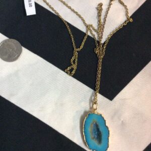 NECKLACE – AGATE/GEODE/CRYSTAL – GOLD LOOKING SETTING – BRASS LINK CHAIN
