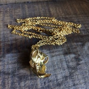 GOLD PLATED SABERTOOTH TIGER SKULL NECKLACE