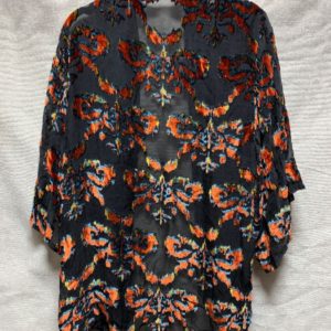 SHEER FLOCKED BURNOUT VELVET OPEN CARDIGAN KIMONO TOP