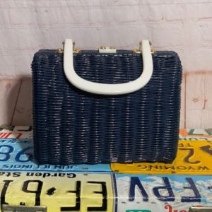 RETRO WICKER HAND BAG PURSE W/ LUCITE PLASTIC PARTS & ADDED HEART DESIGN