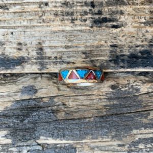 STAINLESS STEEL CRUSHED TURQUOISE & CORAL RING BAND