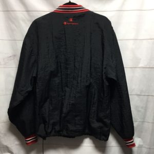 1990S PULLOVER CHAMPION NYLON JACKET EMBROIDERED LOGO STRIPED V-NECK & CUFFS ADJUSTABLE BOTTOM