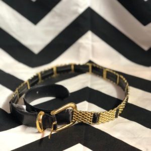 NARROW LEATHER BELT WOVEN THRU HARDWARE SECTIONS