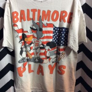1990’S T-SHIRT – BALTIMORE ORIOLES – LOONEY TOONS GRAPHIC PRINT FULL FRONT AND BACK DESIGNS