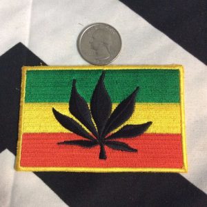 EMBROIDERED PATCH – MARIJUANA LEAF ON RASTA FLAG