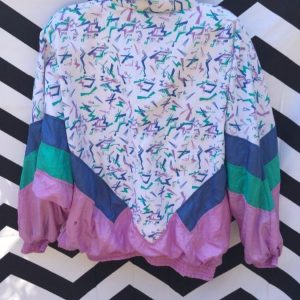 1980’S WINDBREAKER JACKET, COTTON & NYLON, ZIP-UP, CROPPED, COLOR BLOCK DESIGN W/SOLID COLORS & FUNKY PRINT