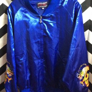 FAR EAST TOUR SOUVENIR BOMBER JACKET THIN SATIN ZIP-UP W/EMBROIDERED DRAGON & OKINAWA JAPAN LETTERING