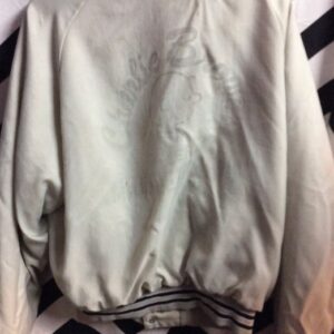 Silver Satin Baseball Jacket with washed out Charlie Brown on back
