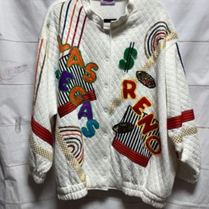 1980S COTTON QUILTED MOCK COLLAR JACKET LAS VEGAS SEQUIN PATCHWORK