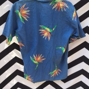 POCKET T-SHIRT COTTON KNIT W/COLLAR & FLORAL BOUQUET PRINT