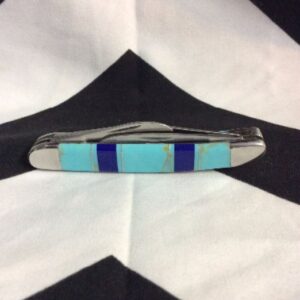 POCKET KNIFE W/NATURAL TURQUOISE & LAPIS INLAYS