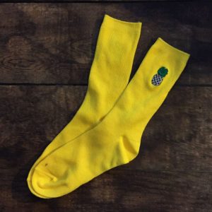 EMBROIDERED PINEAPPLE PICTORIAL RIBBED SOCKS MID CALF