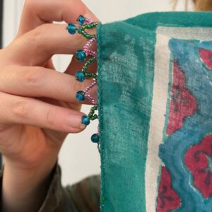 FLORAL WATERCOLOR STYLE SCARF WITH BEADED TASSEL CORNERS