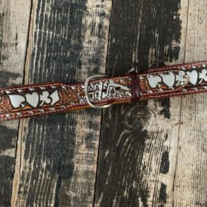 BEAUTIFUL EMBOSSED LEATHER BELT STERLING SILVER BUCKLE