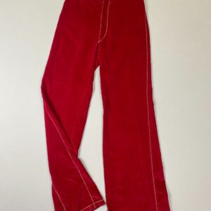 KILLER!!! 1960S-70S WIDE LEG VELVET TROUSERS WHITE CONTRAST & UNIQUE BACK POCKETS STITCHING RAINBOW INTERIOR TRIM TALON ZIPPER