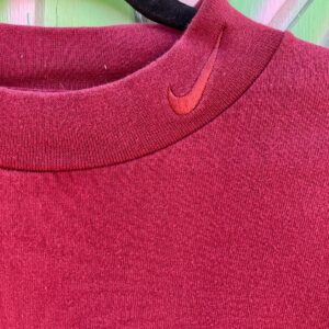 *AS-IS* 1990S MOCK TURTLENECK EMBROIDERED SWOOSH LONG SLEEVE HEAVY COTTON T SHIRT